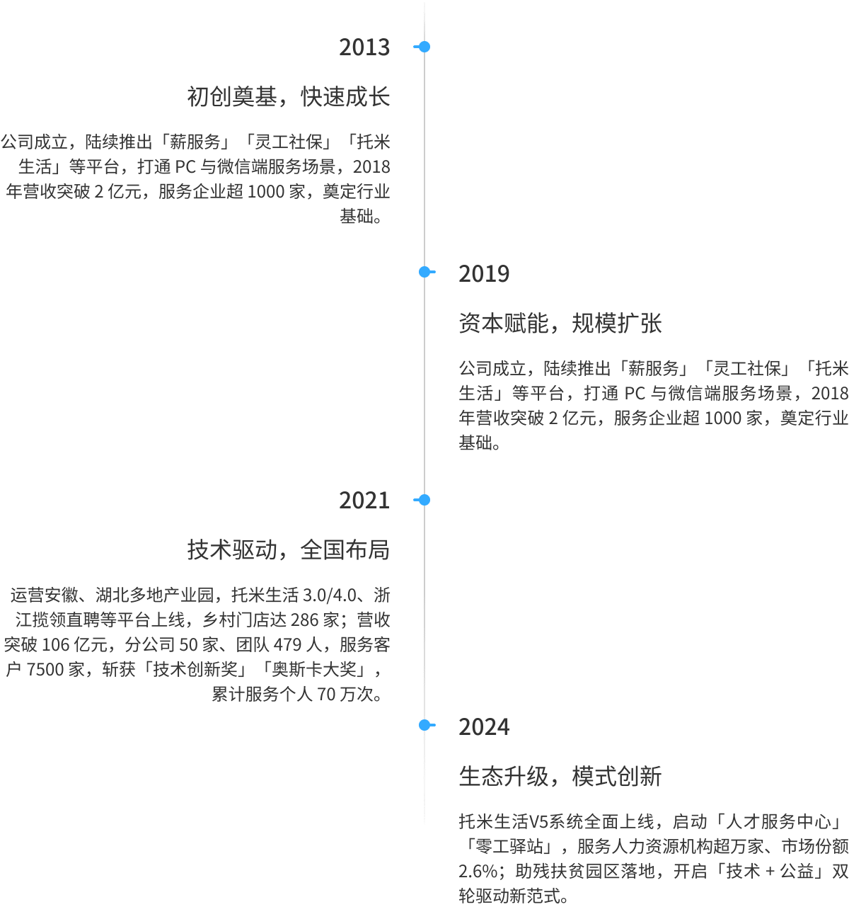 托米云2013年在嘉兴成立,为全国3000万名新业态就业劳动者和非标劳动者提供灵活就业、灵活用工信息以及技术撮合服务平台。